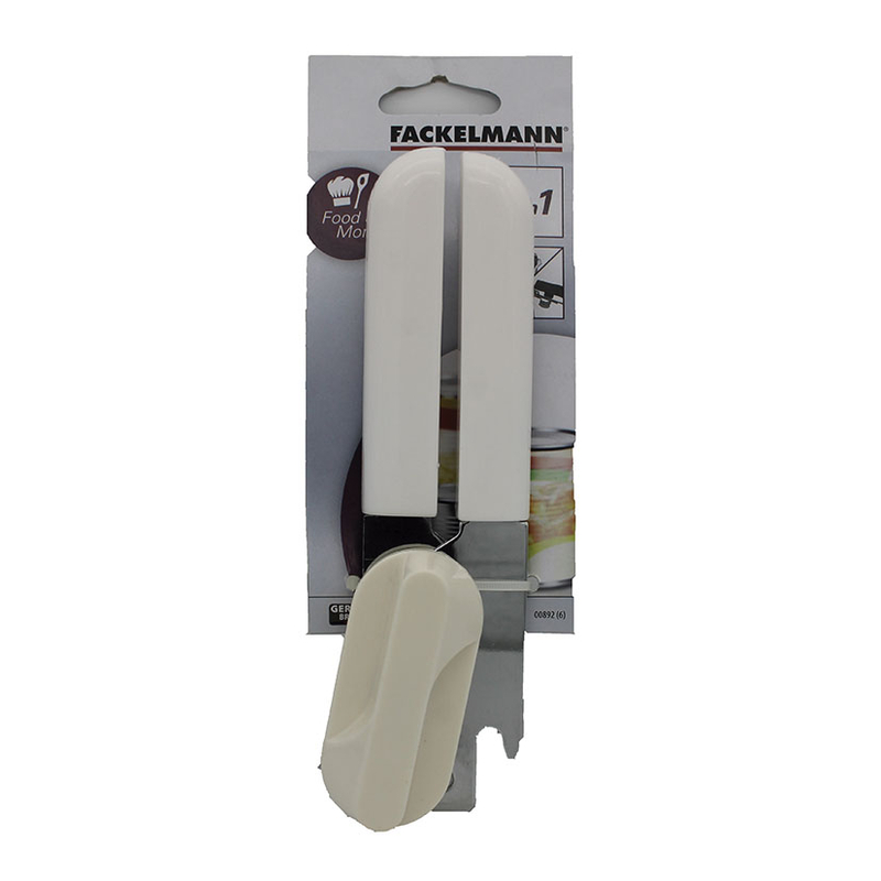 Este abrelatas está diseñado para trabajar con una sola mano e incluye un imán que se adhiere a la tapa para evitar que se caiga. El engranaje del abrelatas está fabricado en acero inox. Viene presentado en blíster. Sus dimensiones son 22x9xh5 5 cm y el mango está fabricado en plástico.