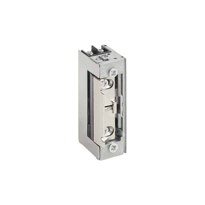 Este abrepuertas de 12V con liberación automática sin frontal. Incorpora pestillo regulable, permite un desplazamiento lateral para un mejor ajuste del cierre eléctrico con el picaporte. Es reversible, simétrico y tiene memoria al recibir el impulso eléctrico, gracias a la palanca de desbloqueo, queda desbloqueado para una sola apertura. Cajetín reducido.Tiene unas medidas de 16,5×28,5xh.67 mm. Viene presentado en caja.