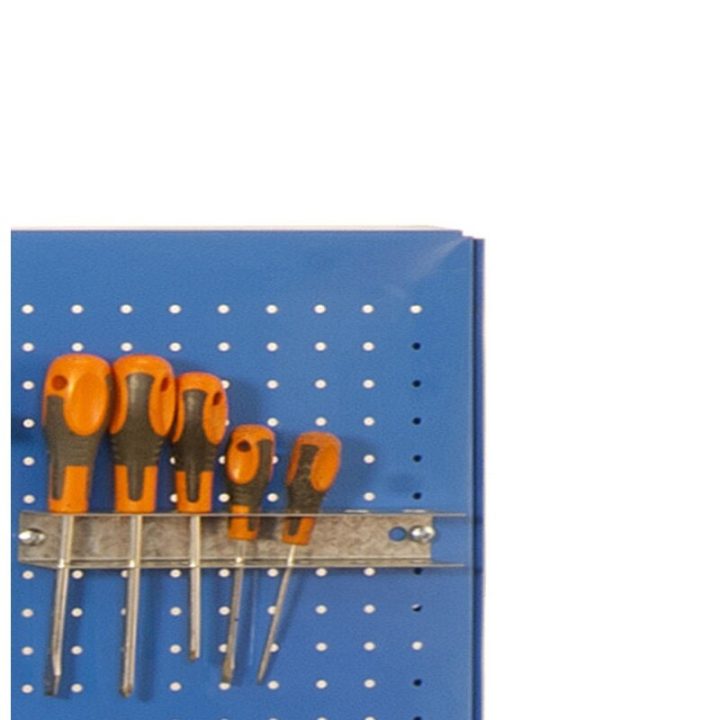 Accesorio para colocar y organizar destornilladores en banco de trabajo.