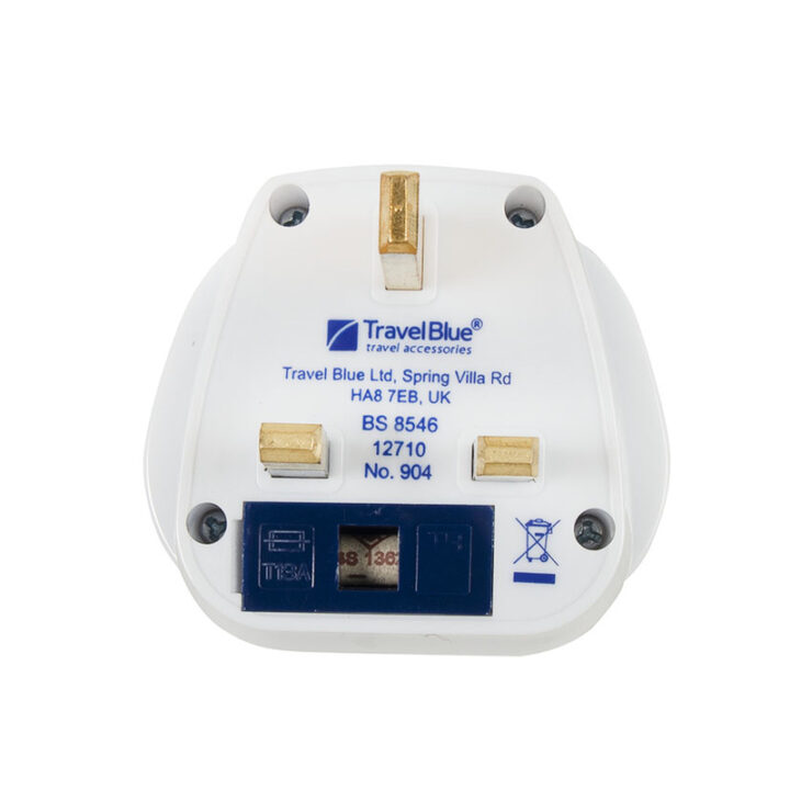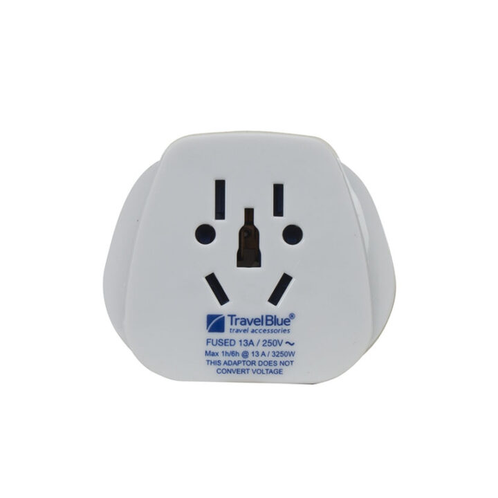 • Se conecta de forma segura a la mayoría de los enchufes del mundo (excepto India Sudáfrica y los enchufes Schuko) • Conectado a tierra para mayor seguridad. • Permite a los viajeros de más de 150 países utilizar con seguridad aparatos con o sin toma de tierra en el Reino Unido, Irlanda, Singapur, Hong Kong, Chipre, Bahréin, Uganda y otros países utilizando la misma toma de corriente. • Este adaptador no convierte el voltaje. • Compruebe la compatibilidad del aparato con el voltaje local antes de insertar el enchufe. • Carga máxima 15A, 250V. Con fusible de 15A. • Tipo de enchufe: Reino Unido de 3 clavijas, con conexión a tierra. • No debe utilizarse con enchufes que tengan contactos de tierra montados lateralmente. • Seguridad probada según las normas británicas (BS 8546)