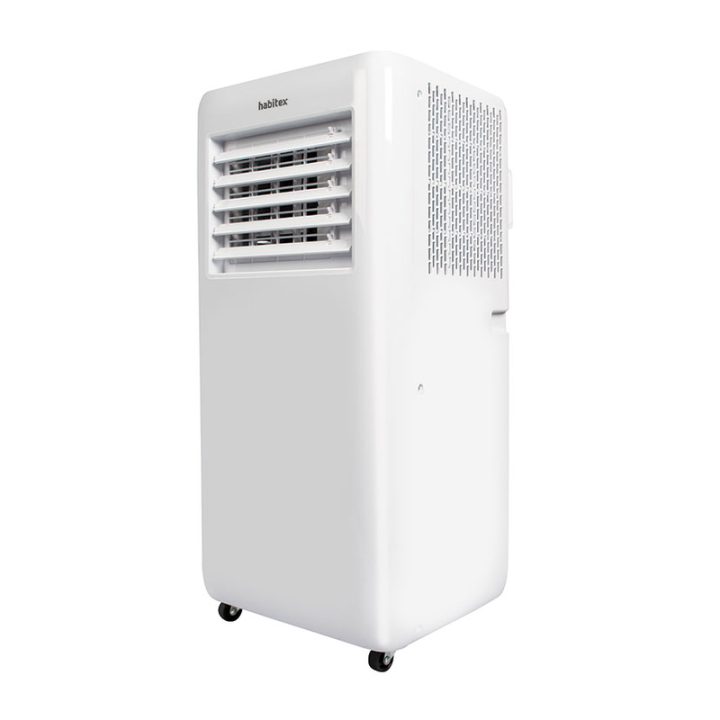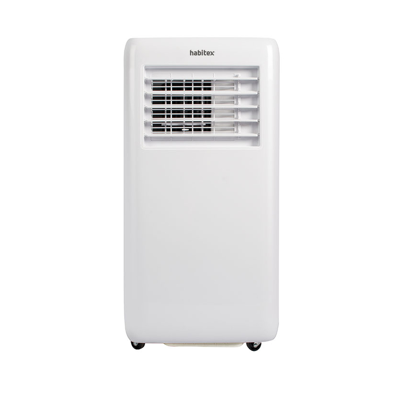 El aire acondicionado portátil HABITEX AC9000 dispone de 3 funciones: aire frío, deshumidificación y ventilación. Cuenta con 2 velocidades, oscilación horizontal para una mejor distribución del aire. Puedes escoger la hora de finalización gracias a su temporizador de 24 horas. Incorpora mando a distancia para que lo puedas manejar desde cualquier punto de la estancia. Cuando el depósito está lleno te lo indicará el aparato. Funciona con refrigerante ecológico R290 y la capacidad de enfriamiento es de 9000BTU. Tiene unas dimensiones de 28x33xh.68,5 cm. Incluye tubo de extracción ø 15,4 cm y longitud 150 cm. Extracción de la humedad es de 1.0 l/h.