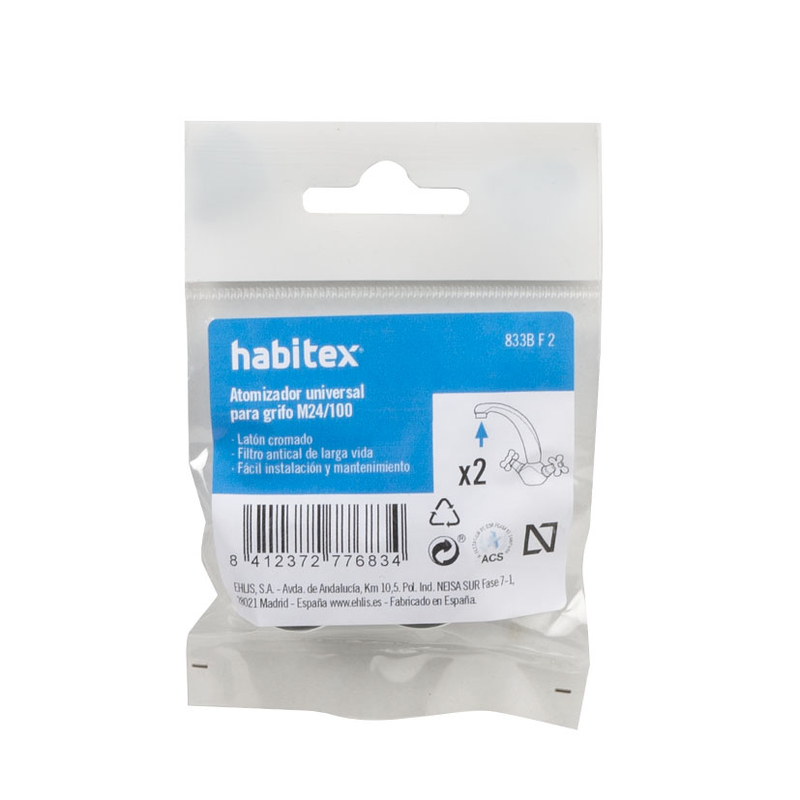 Atomizador indicado para el ahorro del agua, este en concreto ahorra hasta un 50% del caudal de agua. Está fabricado en latón cromado y es fijo. Este accesorio se vende en una bolsa con 2 unidades.