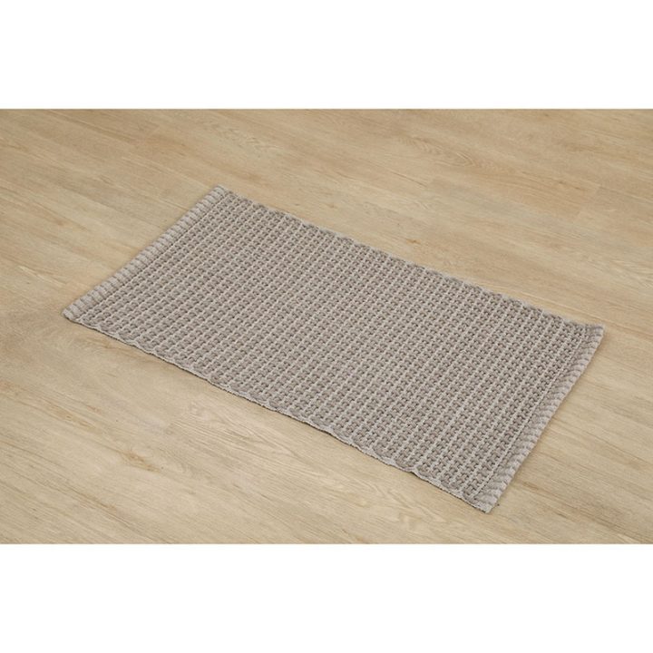 Esta alfombra está confeccionada en tejido de algodón trenzado en color topo. Tiene unas medidas de 50×90 cm y es muy práctica para colocarla en el pie de la ducha o bañera para no resvalarte al salir.