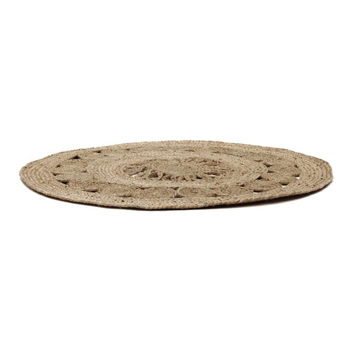 Esta alfombra está fabricada en yute y está calada. Se unirán fácilmente a tu decoración aportando calidez y diseño. Tiene un diámetro de 90 y una altura de 0,5 cm.