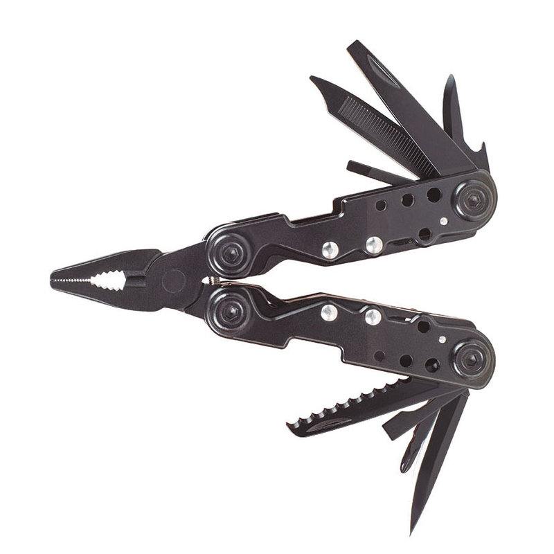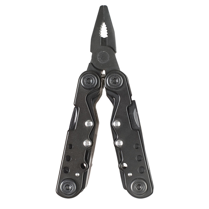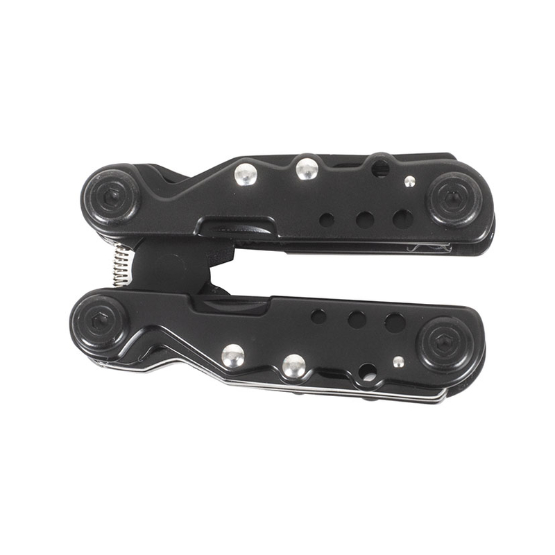 Fabricado en acero inoxidable con fácil acceso a las herramientas. Incluye una funda de nilón adaptable al cinturón. Su medida cerrado es de 70 mm y abierto de 110 mm.
