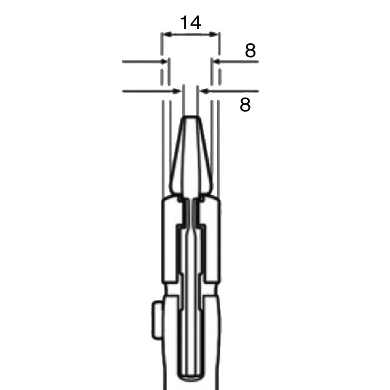 Este alicate dispone de un botón automático que se pulsa para un ajuste automático directamente en las pieza de trabajo. Dispone de mordazas paralelas; su diseño permite adaptarla a todos los anchos de boca hasta el máximo especificado. Está fabricado en acero al cromo vanadio pavonado. Los mangos son bimaterial y delgados para un mejor manejo de la herramienta. El alicate tiene 250 mm de longitud tiene una abertura para tubos de hasta ø 50 mm y para tuercas de hasta ø 52 mm. Viene presentado en una bolsa.