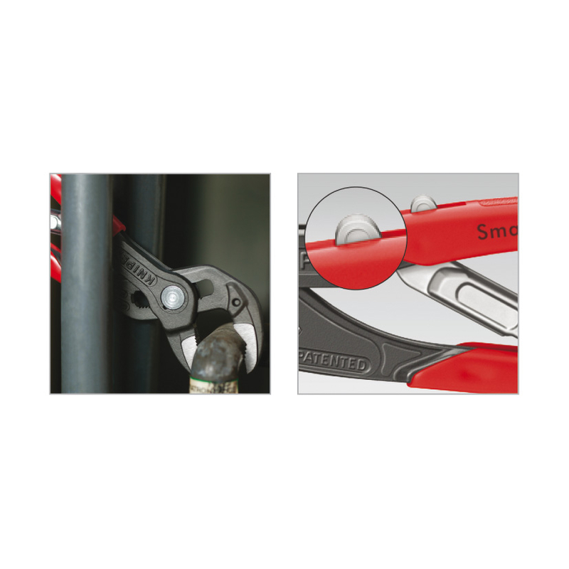 Este alicate tiene un diseño esbelto la longidud es de 250 mm, con mangos estrechos. Es de color gris atramentado y los mangos están recubiertos de PVC antideslizante. El proceso de ajuste a la pieza de trabajo se realiza de forma automática y es ideal para operaciones que requieren continuos cambios de dimensiones en las piezas de trabajo. Se presenta en una caja.