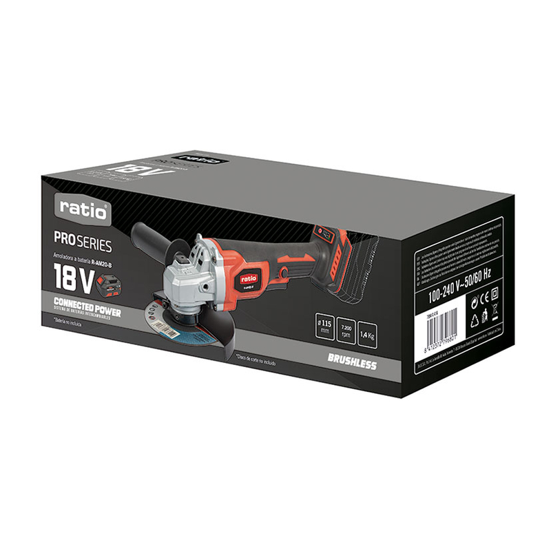 La amoladora angular RATIO ProSeries R-AM20-B funciona con una batería de 18 V de potencia que proporciona 7200 rpm. Una máquina funcional e increíblemente práctica, con diseño compacto y ligero para un manejo seguro. Dispone de frenado eléctrico, para el disco en menos de 2 segundos. Con mango ajustable a ambos lados, agarre estrecho y ergonómico. La batería y el cargador no están incluidos. La batería y el cargador no están incluidos, se venden por separado Funciona con el sistema de baterías Connected Power para aquellos equipos de la misma línea.