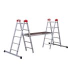 Plataforma de trabajo (Eurodeck) de madera (Pino Radiata Multistrato) reforzada por 2 estructuras de acero perfiladas en los extremos para un perfecto ajuste con el peldaño