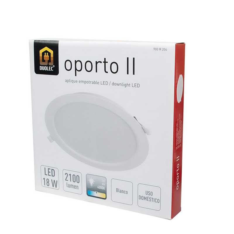 Este Downlight está fabricado en policarbonato para una larga durabilidad y resistencia. Sus 18W de potencia emiten una intensidad lumínica de 2100 lumen de luz día a una temperatura de 4000k. Duración de vida útil 30.000 horas.