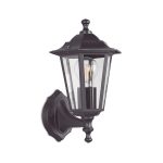 Este aplique tiene una estructura de aluminio fundido pintado en negro. Está diseñado para instalar en espacios exteriores. Tiene una impermeabilidad con protección IP44. El tipo de casquillo que necesita es de rosca E27 y una bombilla con una potencia de 60W de máximo que no está incluida. Este aplique tiene una altura de 31 cm. Se presenta en una caja.