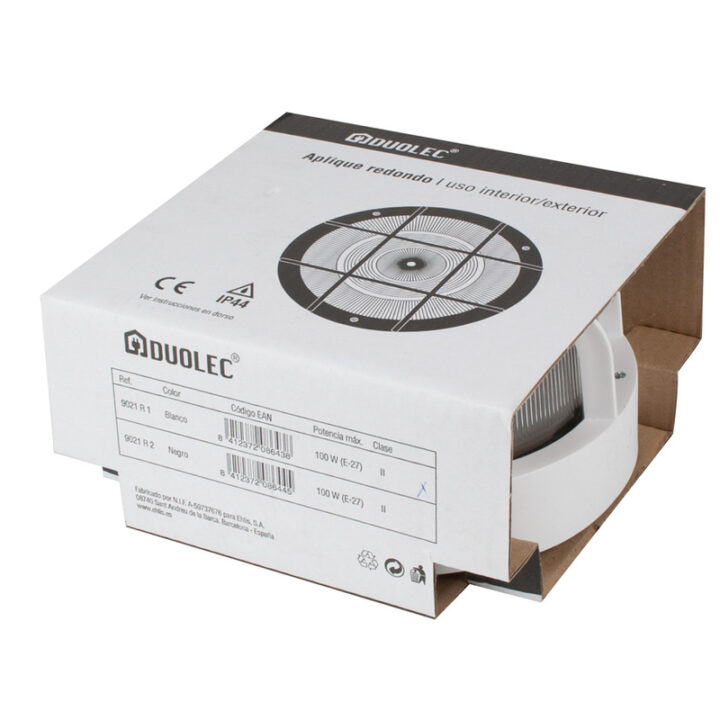 Este aplique redondo está formado por un difusor de vidrio y tiene una entrada de cable elástica. Funciona con una bombilla de rosca tipo E27. Su potencia máxima es de 60W. Tiene un grado de protección de IP44. Cumple con la norma CE EN 60598-1/2-1. Se presenta en una caja.