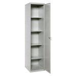 Armario metálico en gris de 1 puerta y 4 estantes. Las dimensiones son 1800x400x400 mm y se entrega montado.
