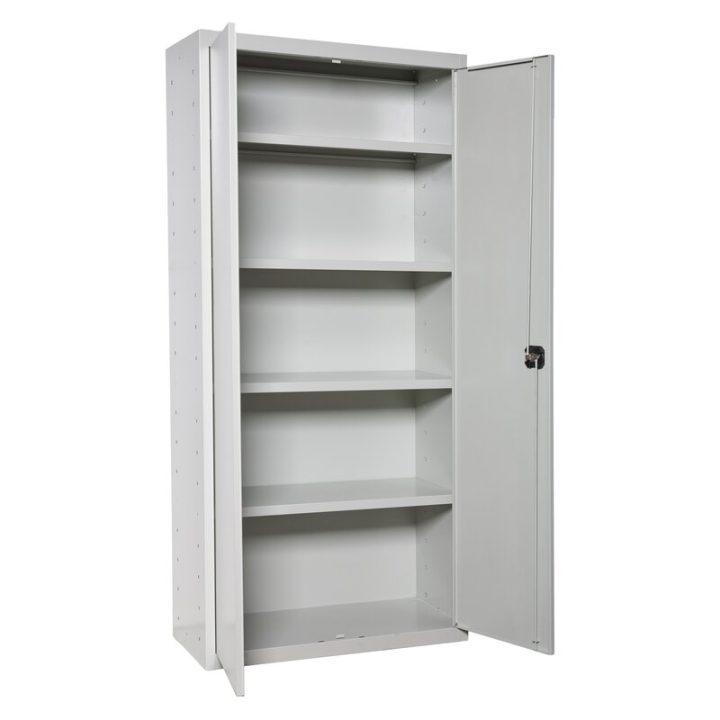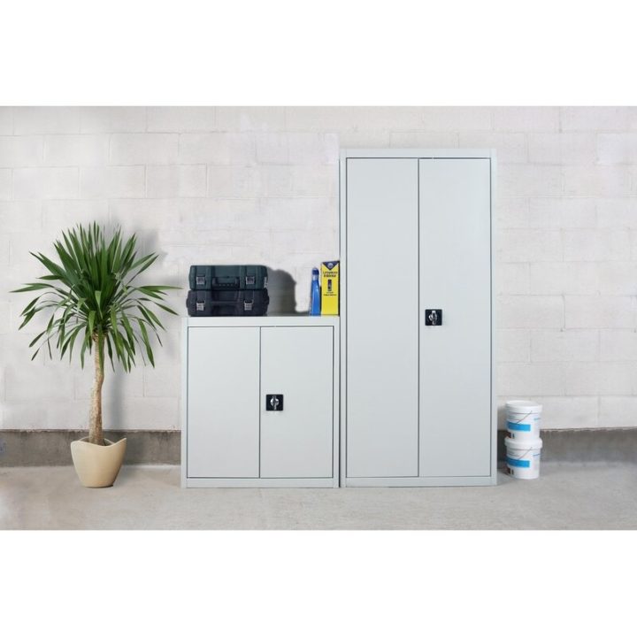 Armario metálico en gris de 2 puertas grises y 4 estantes. Las dimensiones son 1800x600x400 mm y se entrega desmontado.