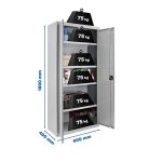 Armario metálico en gris de 2 puertas gris y 4 estantes. Las dimensiones son 1800x800x400 mm y se entrega desmontado.