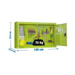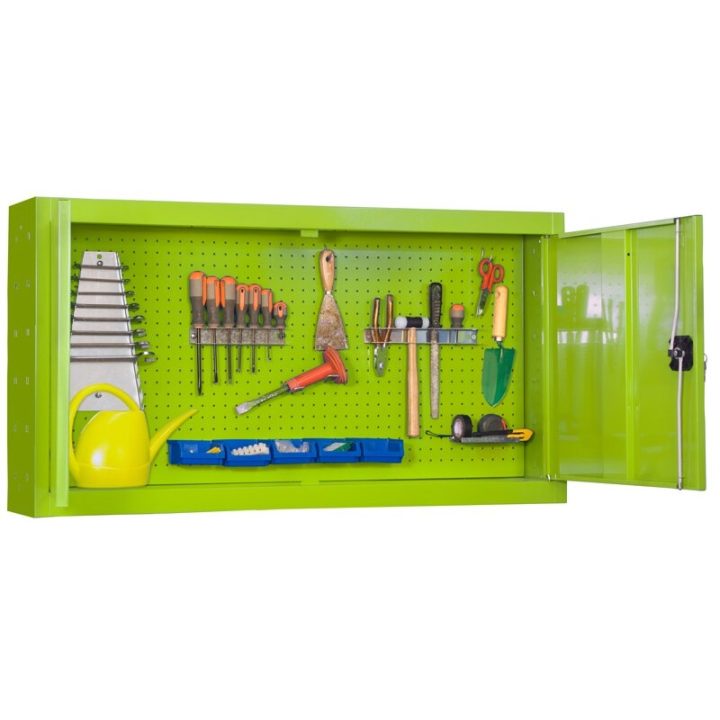 Es rigido. Necesita anclaje a la pared. Un armario metalico, siendo la pared del fondo un panel dónde poder colocar mejor ciertos utensilios y herramientas -Permite un cierre con llave de este, donde guardar con mayor seguridad herramientas y utiensilios. Se entrega montadoColor del producto VERDE. Dimensiones 675x1200x200. Nº estantes 1