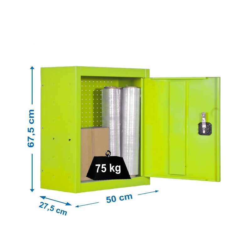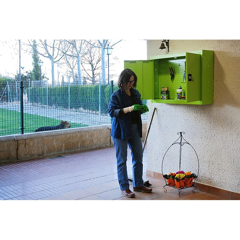 Es rigido. Necesita anclaje a la pared. Un armario metalico, siendo la pared del fondo un panel dónde poder colocar mejor ciertos utensilios y herramientas -Permite un cierre con llave de este, donde guardar con mayor seguridad herramientas y utiensilios. Se entrega montadoColor del producto VERDE. Dimensiones 675x500x200 . Nº estantes 1