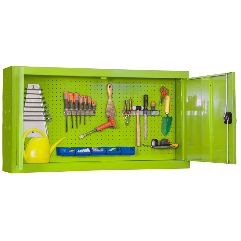 Es rigido. Necesita anclaje a la pared. Un armario metalico, siendo la pared del fondo un panel dónde poder colocar mejor ciertos utensilios y herramientas -Permite un cierre con llave de este, donde guardar con mayor seguridad herramientas y utiensilios. Se entrega montadoColor del producto VERDE. Dimensiones 675x900x200 . Nº estantes 1