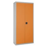 Armario metálico en gris y las puertas naranjas de 2 puertas y 4 estantes.