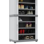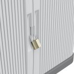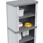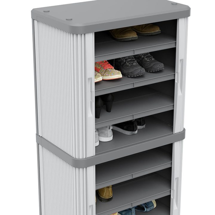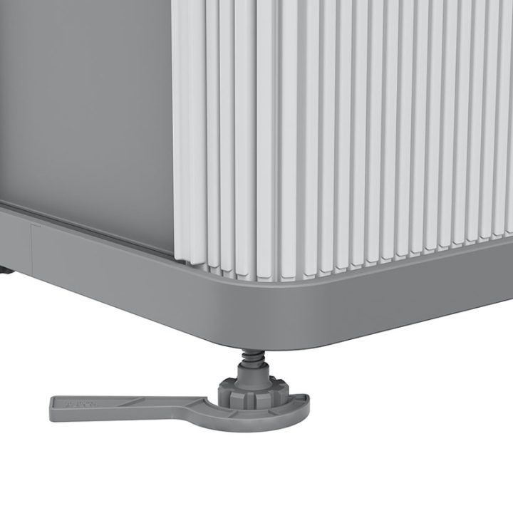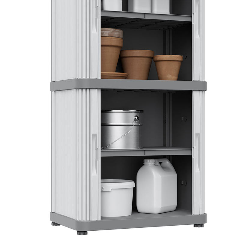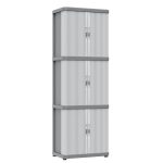 Armario multiusos de diseño robusto y resistente que puede ser ubicado tanto en interiores como en exteriores. Está fabricado en resina, un material plástico resistente a la intemperie, con protección contra la lluvia y certificado IP43. Está compuesto por 3 módulos, cada uno, dispone de puertas enrollables que permiten ahorrar espacio y 2 estantes que soportan una carga máxima de 10 Kg. Viene desmontado en una caja y tu mismo puedes realizar el montaje de forma sencilla. En nuestra web disponemos de diferentes modelos de armarios de esta misma serie.