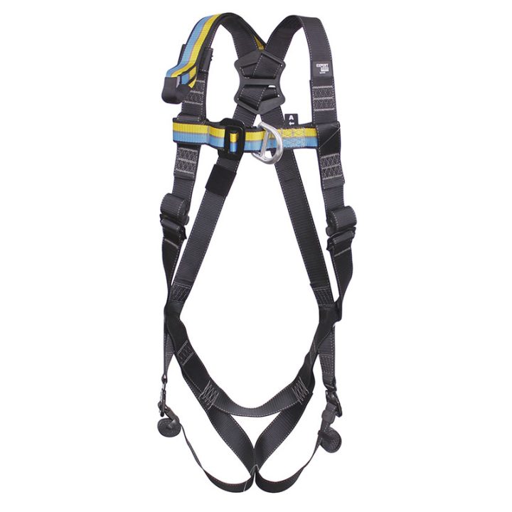 Arnés con 2 puntos de anclaje, regulable en hombros y muslos. Anilla dorsal y frontal anticaídas fabricadas en aluminio, cinta de extensión 44 mm fabricada en poliéster. Incluye sistema Antislip para el recogido de cintas e Irusack 10L. Norma EN361.