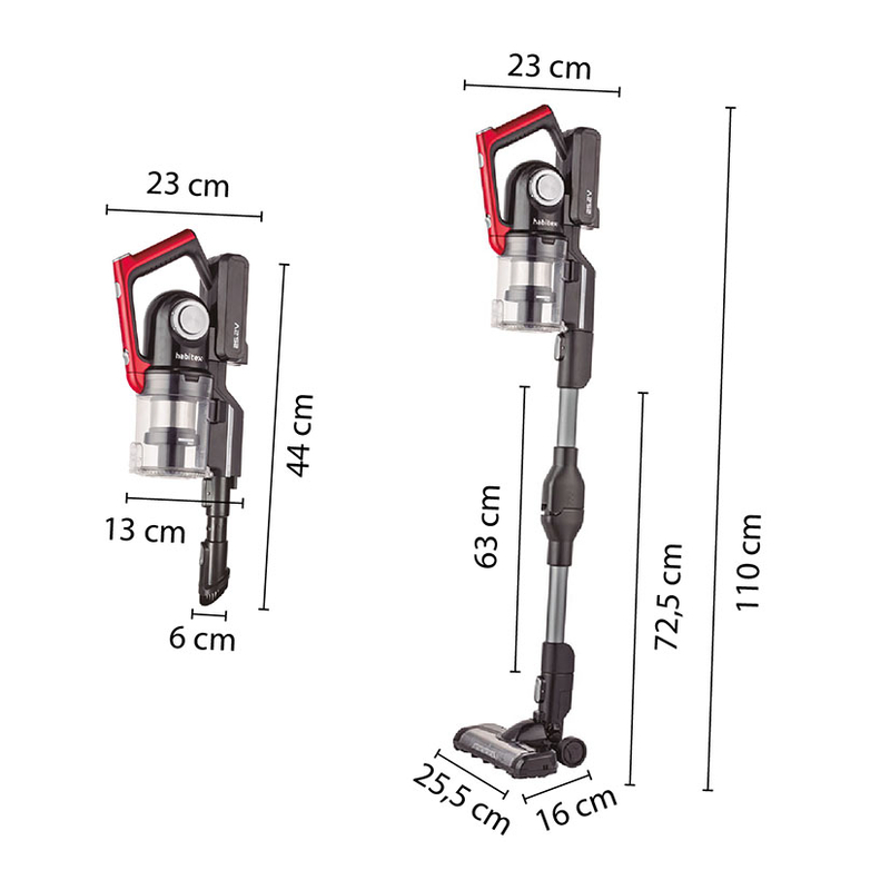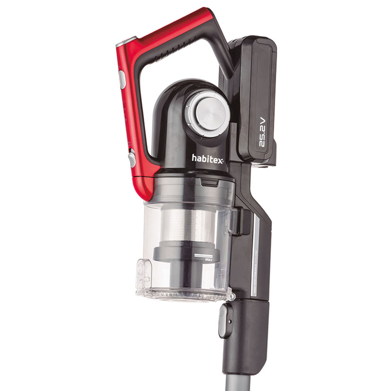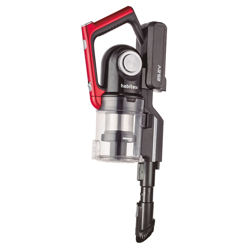 El aspirador HABITEX 2 en 1, aspirador de mano y escoba, ideal para aspirar cualquier superficie de una forma rápida y cómoda. Es ultra ligero, funciona sin cable, y está equipado por un motor BLDC, sin escobillas de alto rendimiento, con una potencia de 25,2 V. Gracias a su tubo artículado, flexible, te permite acceder a todos los lugares de difícil acceso de una forma más fácil. Su depósito es de fácil vaciado e incluye boquilla para ranuras y cepillo 2 en 1 especial tapicerías. Puedes seleccionar una de las 3 velocidades que incorpora para alfombras o suelos duros. Además gracias a sus ruedas de goma, evitarás rayar las superficies más delicadas. El cepillo desmontable incorpora luz en el frontal para rincones donde haya muy poca visibilidad. Se presenta en una caja y tiene 3 años de garantía. Puedes complementar la información del producto consultando la ficha técnica que tenemos colgada en la web.