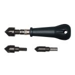 El avellanador manual está fabricado en metal y plástico y dispone de tres bocas intercambiables. Estas tres puntas avellanadoras de gran resistencia y su correspondiente mango te permitirán barrenar la madera y materiales similares de forma muy eficiente. Su diseño está pensado para lograr resultados profesionales con muy poco esfuerzo.