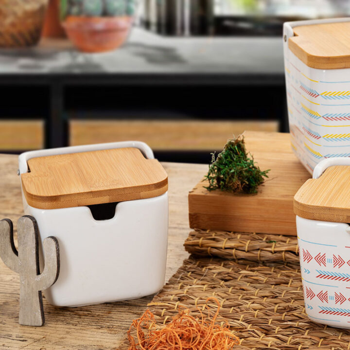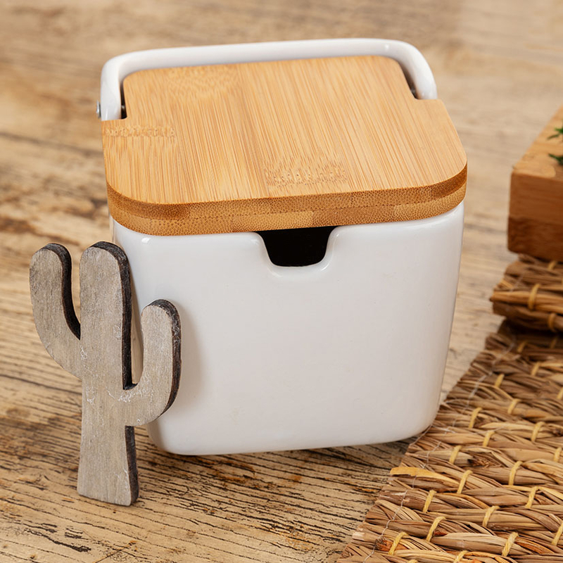 Este azucarero ARC de la serie Arizona Quid con diseño elegante está fabricado en cerámica en color blanco. Dispone de tapa abatible en madera y sus dimensiones son 10x10xh.11 cm. Lo puedes combinar con nuestro salero de la misma gama.
