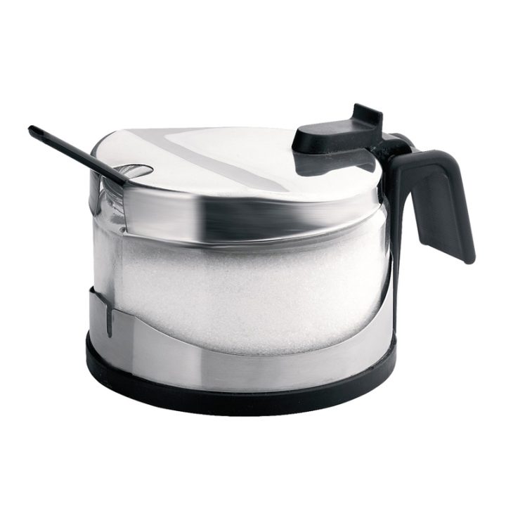 Este utensilio de gran utilidad está fabricado en cristal y en acero inoxidable 18/10. La tapa es de fácil apertura, se puede abrir con una sola mano mientras que con la otra puedes dosificar el azúcar con la cucharilla. Viene presentado en caja.