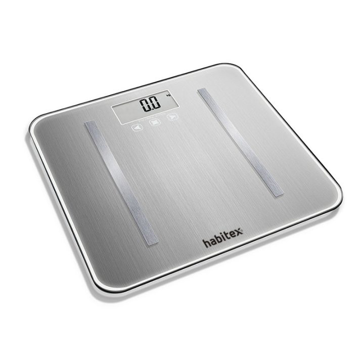 La báscula de baño HABITEX BF85M Bodyfat tiene la plataforma en cristal templado de 6mm de grosor y superficie metálica satinada. Dispone de una gran patalla de LCD 40×80 mm donde puedes ver la información fácilmente. La graduación del porcentaje de grasa corporal es de 0,1%. Además, dispone de memoria para 10 personas, el encendido y apagado es automático y por último te indica cuando está baja de batería y cuando hay sobrecarga. Admite hasta 180 kg de carga. Funciona con 2 pilas de CR2032 que vienen incluidas. Viene presentada en una caja y tiene 3 años de garantía.