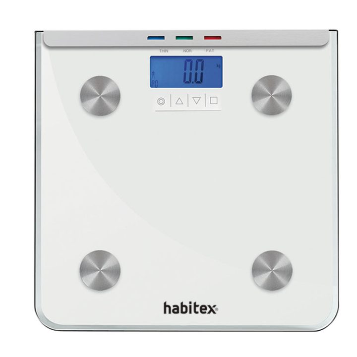 La báscula de baño HABITEX BF-95C Bodyfat tiene la plataforma en cristal templado de 6mm de grosor. Dispone de una gran patalla de LCD donde puedes ver la información fácilmente del peso y IMC. La graduación del porcentaje de grasa corporal es de 0,1%. Incorpora 3 luces roja, amarilla y verde para la advertencia del estado de tu salud. Además, dispone de memoria para 10 personas, el encendido y apagado es automático y por último te indica cuando está baja de batería y cuando hay sobrecarga. Admite hasta 180 kg de carga. Funciona con 3 pilas AAA LR03 que vienen incluidas. Viene presentada en una caja y tiene 3 años de garantía.