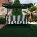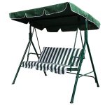 Este balancín viene equipado por una estructura tubular en metal de color azul cuyo diámetros de los tubos son de 38/25/19 mm, un asiento de tres plazas en poliéster y un toldo en poliéster de 180 g/m2. El peso máximo que soporta este balancín es de 320 kg. Es ideal para pasar tus momentos de relax al aire libre con el máximo confort que te aportará este complemento. Las dimensiones son 170×110 cm y una altura de 153 cm Viene presentado desmontado en una caja.