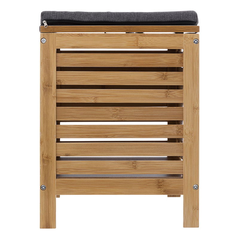 Este banco de alamcenamiento de la marca 5FIVE es ideal para guardar lo que necesites economizando el espacio en cualquier estancia y a la vez utilizarlo como un asiento auxiliar. Está fabricado en madera de bambú, incluye un cojín para que lo puedas utilizar como un asiento. Tiene una capacidad de almacenaje de 35 L y un peso de 4,360 kg. Soporta un peso máximo de 130 kg. Se presenta en una caja desmontado.