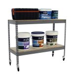 Banco de trabajo sin tornillos con bandejas de madera. Incluye repisa superior, cajón y panel perforado para guardar herramientas y cuyo montaje sí que lleva tornillos. Es de color GRIS/MADERA.Tiene 3 estantes. Las dimensiones de esta Estantería son: 1445x1210x610 mm. Y tiene una capacidad de carga de 600 kgs el estante principal y 250 kgs el estante inferior. La repisa superior aguanta hasta 25 kgs y el cajón 35 kgs. Es fabricado en España y se monta rápido siguiendo las instrucciones.