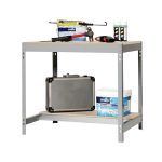 Banco de trabajo sin tornillos con bandejas de madera, de color GRIS/MADERA.Tiene 2 estantes. Las dimensiones de esta estantería son: 842x910x760 mm.