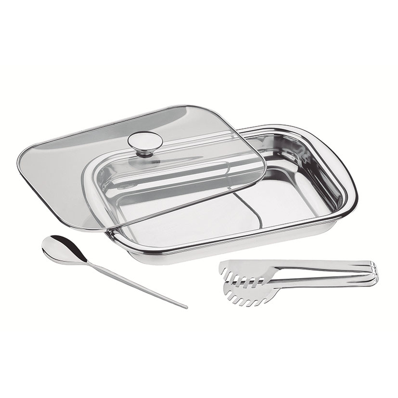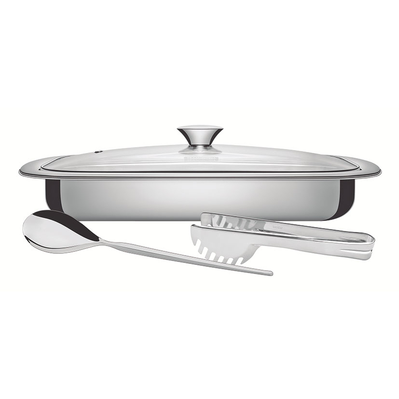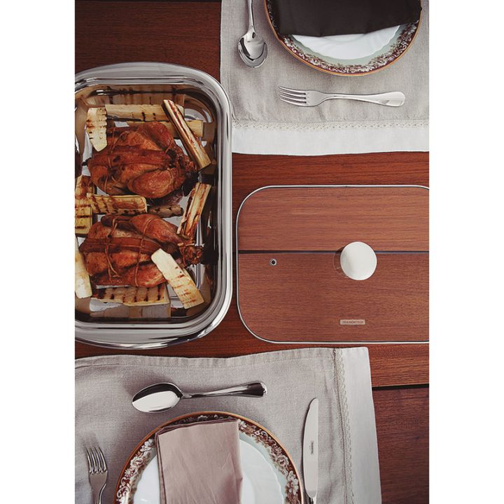 Práctica bandeja para horno de fácil transporte gracias a sus asas de plástico. Tiene unas dimensiones de 36×23 cm.