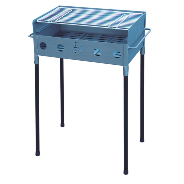 Esta barbacoa tiene una estructura metálica con pintura anti calórica para una mayor durabilidad. Está equipada con 4 soportes metálicos en color negro una parrilla con cincado homologado que podrás regular a 2 alturas y dos asas para poderla transportar fácilmente. Es ligera y fácil de montar.