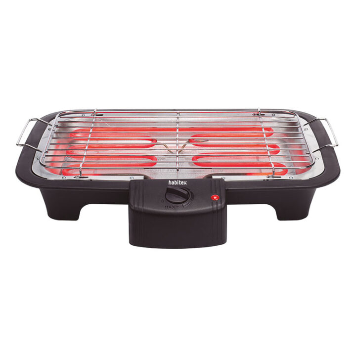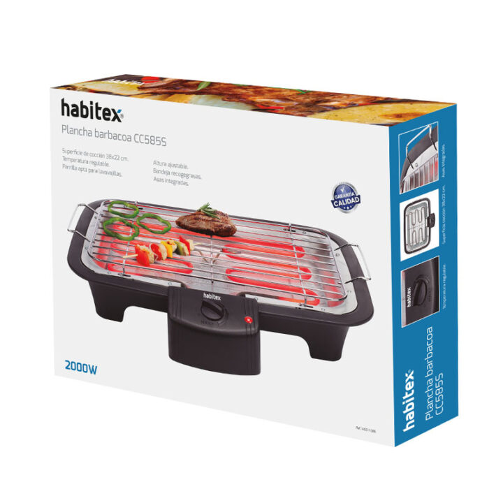 La barbacoa eléctrica HABITEX CC585 S tiene una superficie de cocción de 38×22 cm. Podrás cocinar todo tipo de alimentos de forma saludable sin utilizar aceite. Gracias a su potencia de 2000 W y al termostato permite un rápido calentamiento y una temperatura constante de cocción. Incorpora una rejilla de cocción con asas ajustable a doble altura, bandeja recoge grasa y 4 patas. La carcasa es de plástico y la parrilla es apta para el lavavajillas. Viene presentada en una caja y tiene 2 años de garantía.