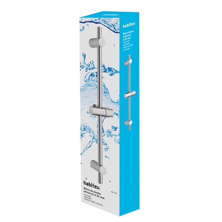 Barra de ducha universal con diámetro de 22 mm. Está fabricada en acero inoxidable y soportes en ABS cromados. La puedes ajustar en altura y viene presentada en una caja.