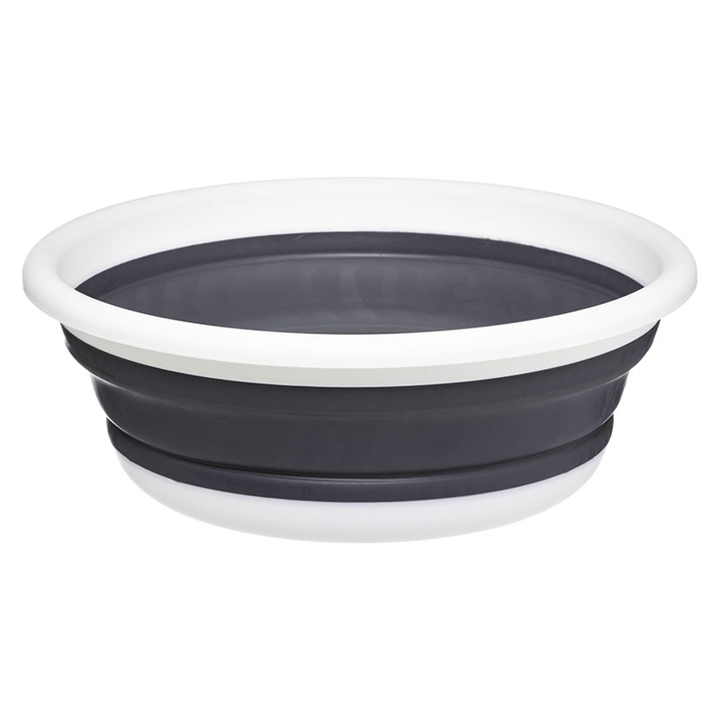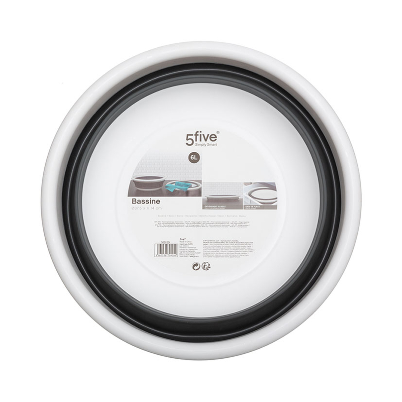 El barreño plegable tiene una capacidad de 6 litros en color blano/gris. Una vez no lo utilices lo puedes plegar para un mejor almacenamiento.
