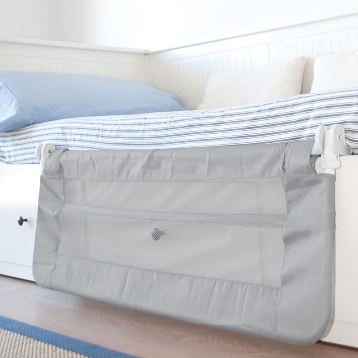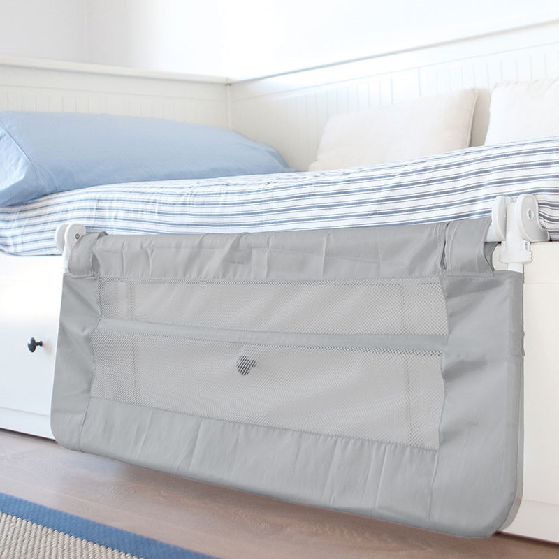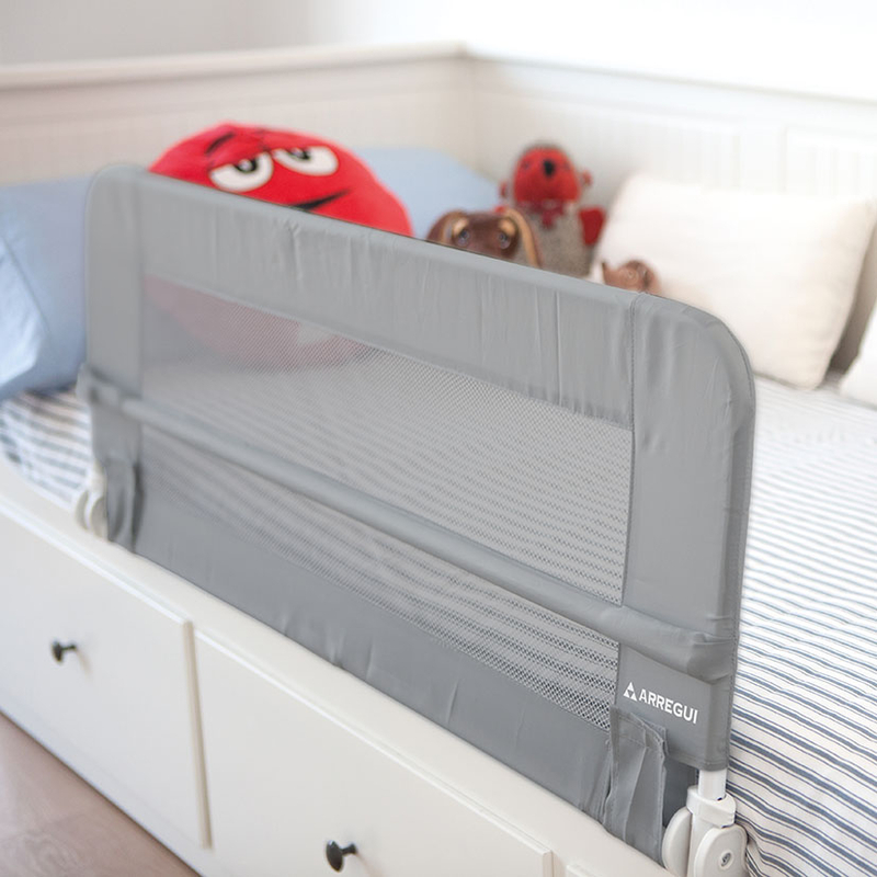 Es abatible y de fácil instalación. Permite un acceso cómodo para hacer la cama sin retirar la barrera. Está fabricada en acero y poliéster. Cumple la Normativa BS7972 + EN71-3. Se presenta en caja.