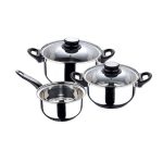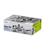 Está compuesta de cinco piezas fabricadas en acero inoxidable con un fondo capsulado y base de aluminio para una distribución más uniforme del calor. Asas y pomos permanecen fríos para garantizar seguridad mientras se cocina. Las tapas de las ollas son de cristal transparente para que puedas controlar en todo momento el proceso de cocción de tus recetas e incluyen una válvula para que salga el vapor. Ideal para todo tipo de cocinas: inducción, gas, electrica, vitrocerámica y halógena.