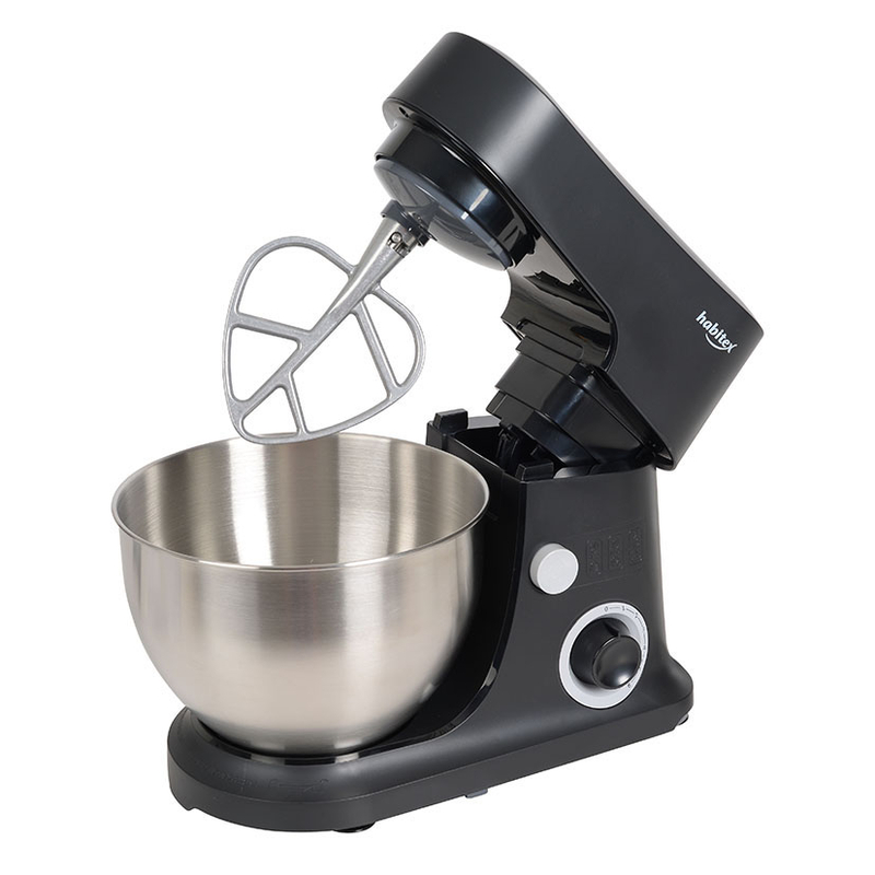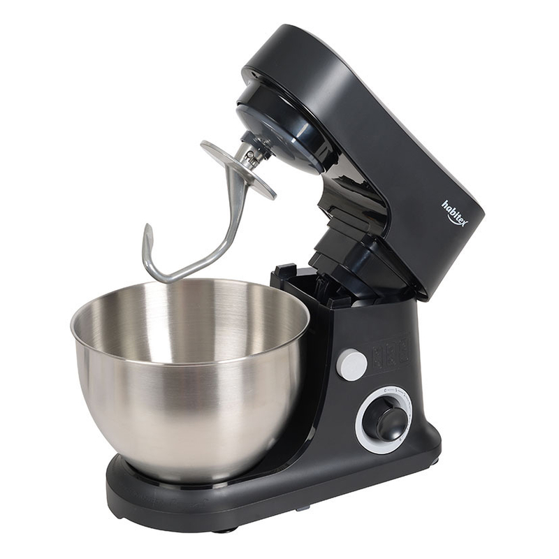 La batidora amasadora 600W HABITEX SC2500P incorpora dos varillas cromadas para batir y amasar, además de un batidor gancho. Las varillas son desmontables para su fácil limpieza. Dispone de 6 velocidades para trabajos que requieran diferentes intensidades de batido, con acción planetaria. El bol ø22,5xh.16,5 cm está fabricado en acero inoxidable y tiene una capacidad de 4 litros. Dispone de temporizador de 15 minutos, bloqueo de cabezal, tapa antisalpizaduras y pies antideslizantes para una mayor estabilidad en la base. Tiene 3 años de garantía y se presenta en una caja.