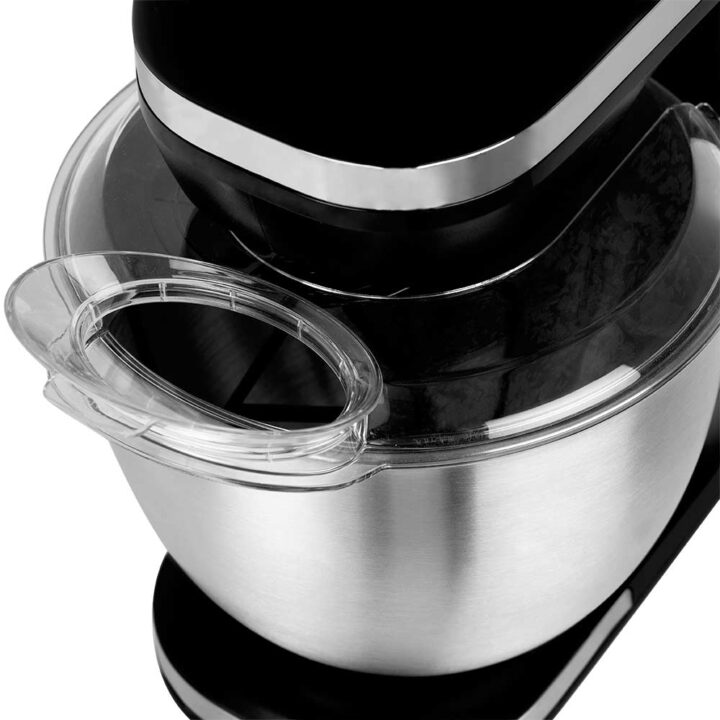 La amasadora AM 6500 cuenta con 1000 W de potencia y ofrece la posibilidad de elegir entre 7 velocidades según la necesidad de cada receta. Incluye bol de acero inoxidable de 5 L. Esta amasadora cuenta con una tapa de protección contra salpicaduras con un orificio de llenado que posibilita incluir ingredientes sin necesidad de para el funcionamiento del aparato.