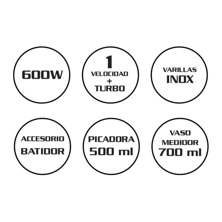 Este electrodoméstico con una potencia de 600W tiene una velocidad regulable más turbo. El pie se desmonta para una fácil limpieza y está fabricado en acero inoxidable. La batidora HABITEX incluye como accesorio: un vaso medidor de 700 ml de capacidad con base antideslizante un accesorio batidor y una picadora de 500 ml de capacidad aptos para el lavavajillas, además la podrás colgar en la pared gracias al soporte que viene incluido en su caja. Tiene 3 años de garantía. Viene presentado en caja.