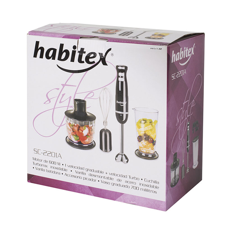 La batidora HABITEX viene con todos los complementos necesarios para elaborar tus recetas de cocina de una forma práctica y cómoda.