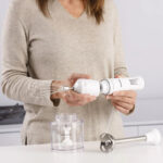 La batidora de mano TAURUS está equipada por un motor de 750W con 20 velocidades regulables más la función turbo. El pie tiene forma de campana para evitar salpicaduras se desmonta para una fácil limpieza y está fabricado en acero inoxidable. Tiene un diseño ergonómico con agarre soft-touch para un cómodo manejo. Podrás batir y picar gracias a sus cuchillas de acero inoxidable de 4 filos de alto rendimiento y doble efecto: baten, pican y hasta pican hielo. Incluye un vaso medidor graduado de 500 ml, un accesorio batidor y una picadora aptos para el lavavajillas, además la podrás colgar en la pared gracias al soporte que viene incluido en su caja. Tiene 3 años de garantía. Viene presentado en caja.