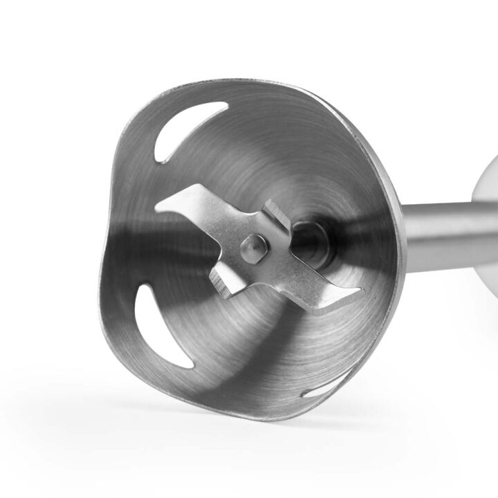 Cuenta con un potente motor DC de 1000 W que, combinado con su hoja de acero inoxidable aseguran un acabado homogéneo y una textura muy fina en tus elaboraciones. El brazo, desmontable mediante pulsador, también es de acero inoxidable. Esto hace que el aparato tenga una mayor resistencia y durabilidad a lo largo del tiempo.