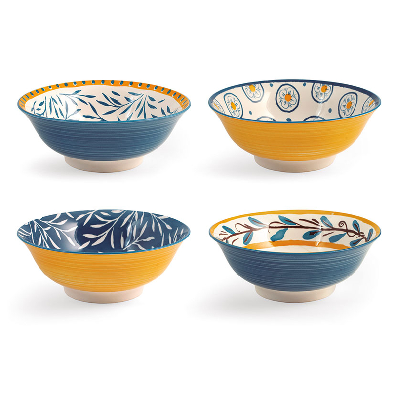 Este plato bol de la linea Salina/Tropea está fabricado en porcelana decorada. Este bol es apto para el lavavajillas y la podrás utilizar también para calentar la comida en el microondas. Tiene unas dimensiones de ø 21 cm. Lo puedes combinar con más productos de esta misma serie. Vienen en cajas de 4 unidades en diseños surtidos.