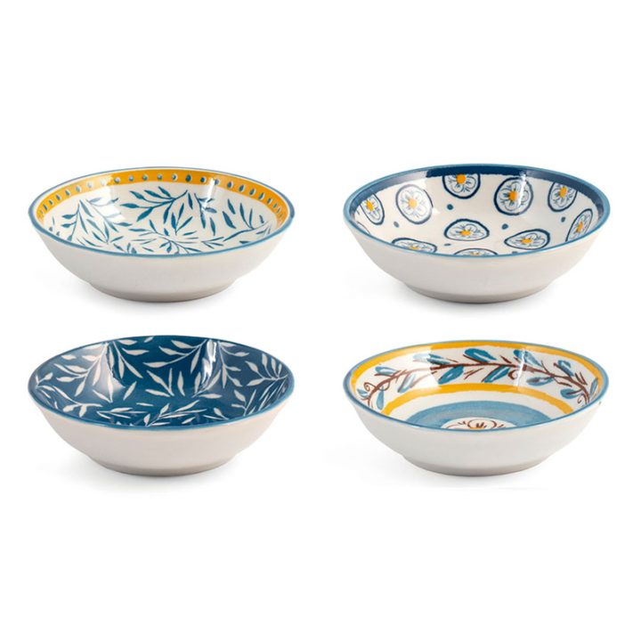 Este plato bol de la linea Salina/Tropea está fabricado en porcelana decorada. Este bol es apto para el lavavajillas y la podrás utilizar también para calentar la comida en el microondas. Tiene unas dimensiones de ø 9 xh.2.5 cm. Lo puedes combinar con más productos de esta misma serie. Vienen en cajas de 12 unidades en diseños surtidos.